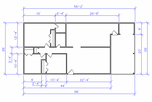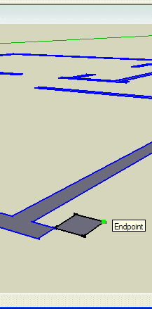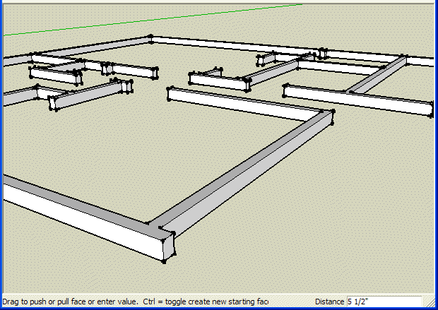 5. Draw a rectangle from the end of one of the wall corners. Notice that the unfilled polyline area also fills in. Erase the new rectangle and its related lines.